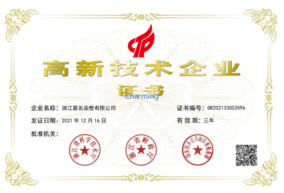 企業(yè)已通過ISO9001質(zhì)量體系認證、ISO14001環(huán)境體系認證、Oeko-Tex Standard 100國際生態(tài)紡織品認證、OCS有機產(chǎn)品認證、GRS全球回收標(biāo)準認證。嘉名人將以新發(fā)展理念為引領(lǐng),著力開發(fā)“綠色、科技、時尚、智慧”的新產(chǎn)品,不斷增強企業(yè)的核心競爭力,朝著“致力成為國內(nèi)外知名服裝品牌的首選面料供應(yīng)商”的企業(yè)愿景邁進。