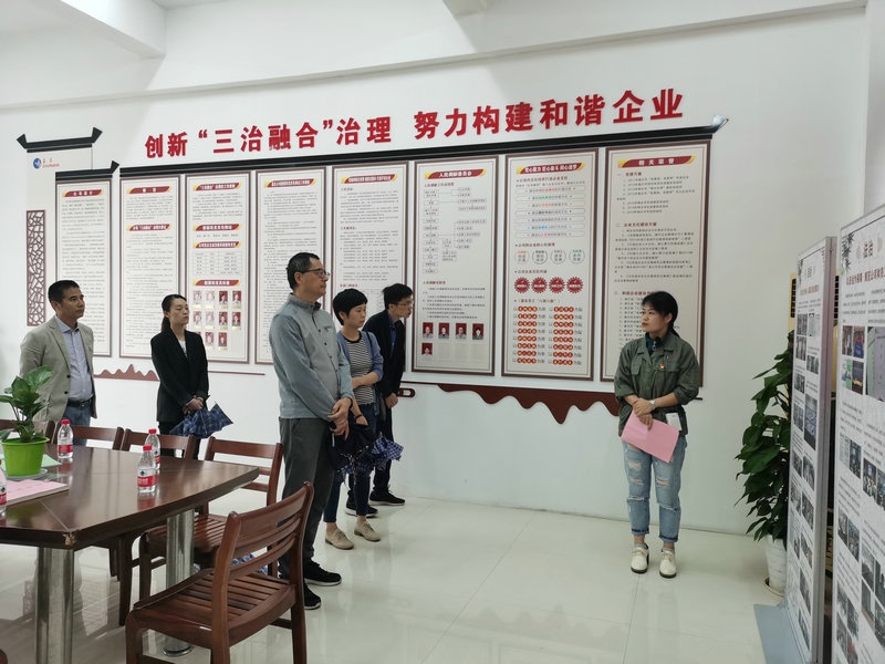 驗(yàn)收組一行實(shí)地考察檢查了公司“三治融合”展示室和針織、染整員工心靈驛站,聽(tīng)取了公司推進(jìn)“三治融合”治理工作做法和成效的介紹,查看了現(xiàn)場(chǎng)和有關(guān)材料,從總體上對(duì)嘉名“三治融合”治理工作給予了充分肯定和好評(píng)。