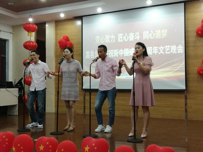 今年是新中國成立70周年,又恰逢嘉名建廠25周年。9月28日晚,公司中高層管理者與員工在嘉名員工公寓區(qū)活動(dòng)樓歡聚一堂,自編自導(dǎo)自演了一場(chǎng)熱烈、精彩、別致的文藝晚會(huì),向新中國成立70周年華誕和嘉名建廠25周年獻(xiàn)禮。