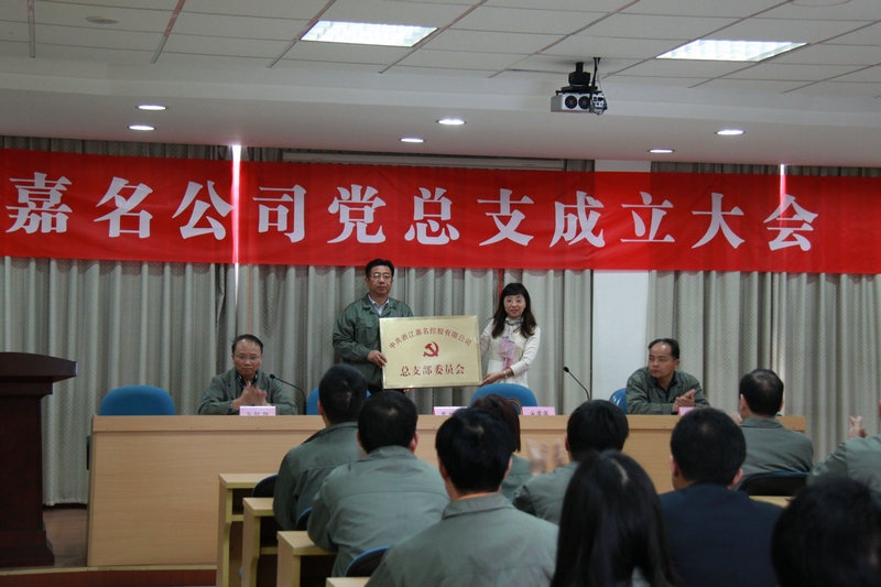 3月31日上午,中共浙江嘉名控股有限公司總支部委員會成立大會隆重召開。公司全體黨員參加會議,鳳鳴街道黨委組織委員吳霞萍到會祝賀,并宣讀了桐鄉(xiāng)市委組織部《關(guān)于同意建立中共浙江嘉名控股有限公司總支部委員會的批復(fù)》和向公司黨總支授牌。