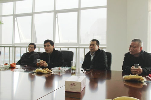 圖為副市長(zhǎng)吳炳泉(左1)公司副總經(jīng)理莫榮明(左2)鳳鳴街道書記葛柏金(右1)參觀車間