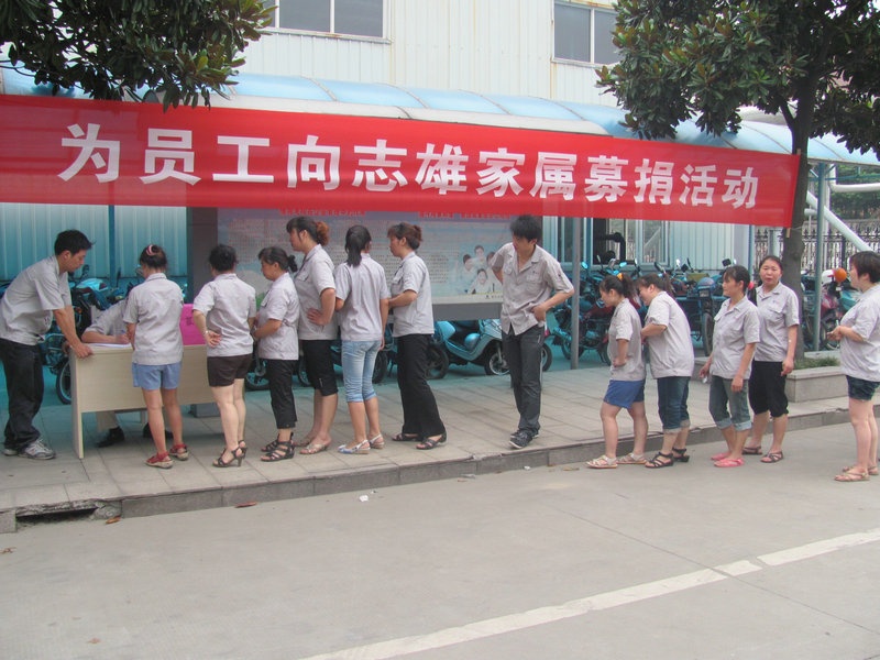 公司染整事業(yè)部員工向志雄于7月7日晨因突發(fā)疾病在居住地病故的不幸消息傳到公司,公司領(lǐng)導(dǎo)非常悲痛,馬上派部門領(lǐng)導(dǎo)赴醫(yī)院做好安撫家屬、喪事處理和善后工作。向志雄年僅32歲,家中有尚有妻子和幼兒,家庭生活陷入困境。對(duì)此,公司向其家屬給予了一定的慰問(wèn)金,與此同時(shí),公司黨支部、工會(huì)、團(tuán)支部及時(shí)組織開(kāi)展了為向志雄家屬募捐活動(dòng),號(hào)召黨團(tuán)員和全體員工伸出援助之手,獻(xiàn)出一份愛(ài)心,積極為向志雄家屬捐款?;顒?dòng)迅速得到了全體黨員和廣大員工的積極響應(yīng),紛紛解囊相助,短短一天多時(shí)間,共收到507名員工的29976元的捐款,其中染整事業(yè)部蔡小剛捐款3000元,捐款不論多少都體現(xiàn)了員工們的愛(ài)心。7月19日,公司將員工們的捐款送到了向志雄家屬手中,向志雄家屬對(duì)公司和員工們的誠(chéng)摯關(guān)愛(ài)表示衷心感謝。